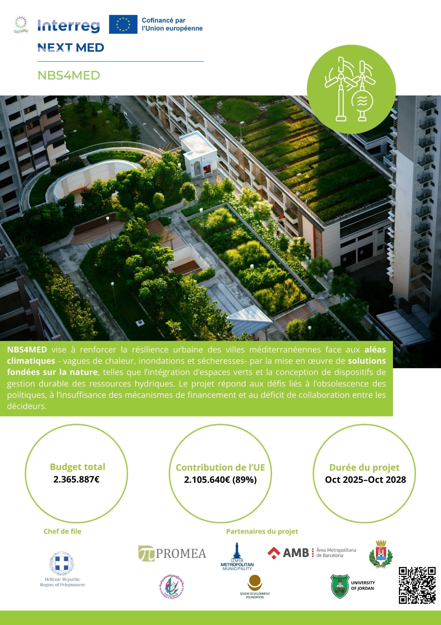Le projet NBS4MED vise à transformer les stratégies d'adaptation urbaine en Méditerranée en favorisant l'adoption et l'intégration de solutions fondées sur la nature (SfN) dans la planification de la résilience climatique urbaine.