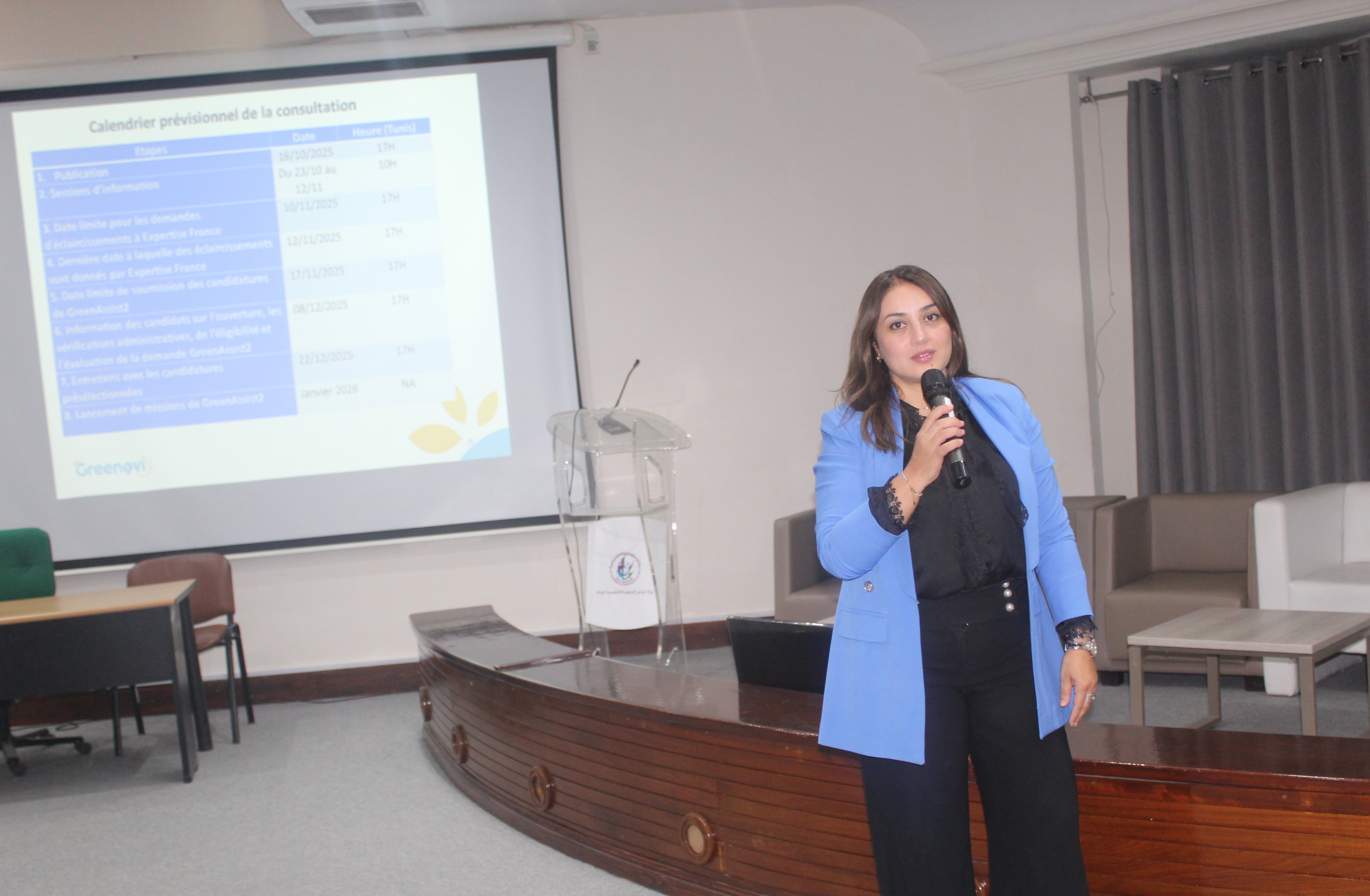 Dans le cadre de la mise en œuvre du projet « Greenov'I », financé par l’Union Européenne, coordonné par le Centre international des Technologies de l’Environnement de Tunis (CITET) en collaboration avec "Expertise France" et visant à soutenir la transition écologique des petites et moyennes entreprises grâce à l'adoption de modes de production durables et propres, une session d’information a été organisée au CITET le 29 octobre 2025 pour présenter les composantes du programme de soutien aux PME et artisans ; le dispositif de “Green Vouchers» qui comprend deux mécanismes complémentaires: